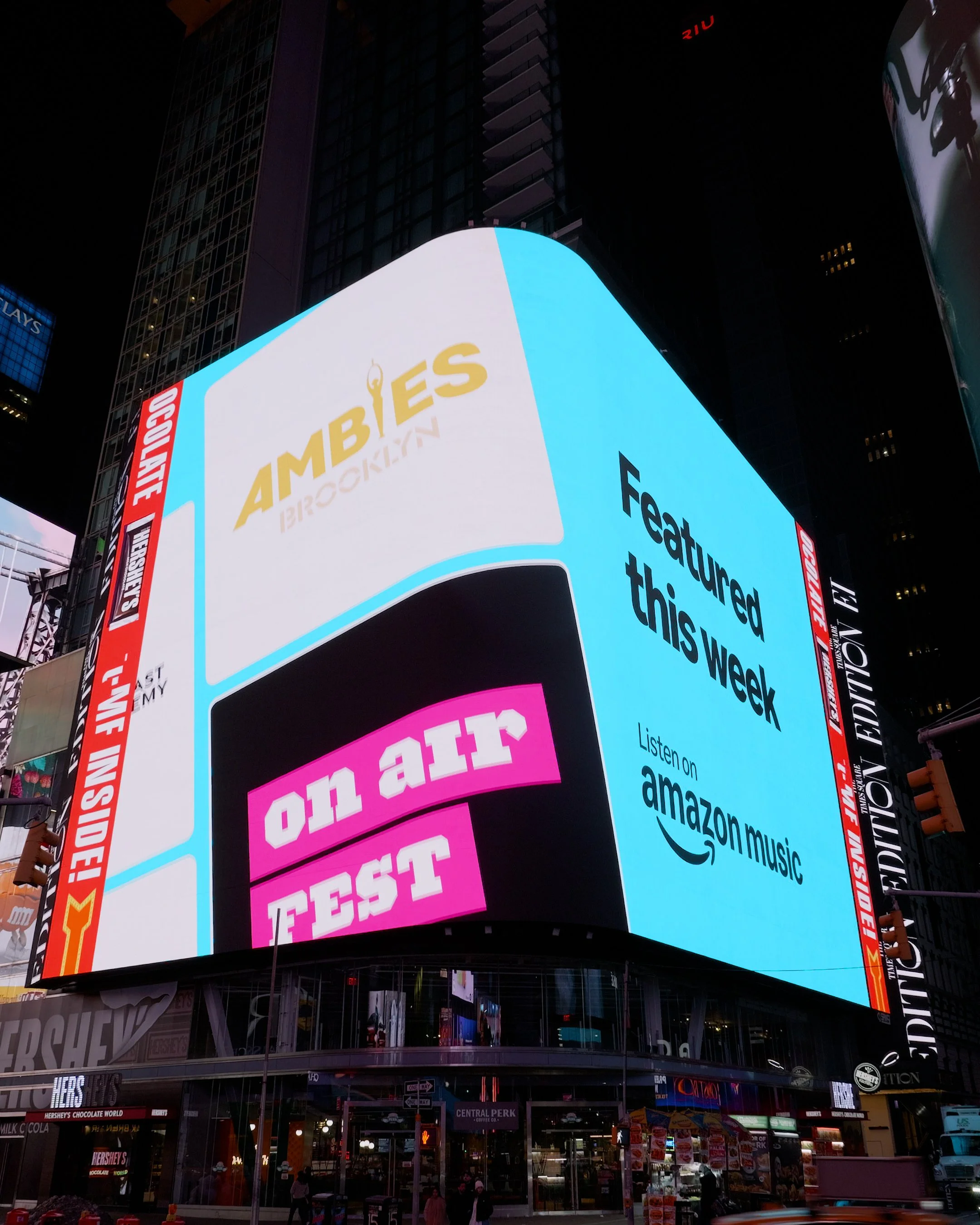 From Times Square to your headphones — see it in person, then stream the Podcast of the Year nominees on Amazon Music.